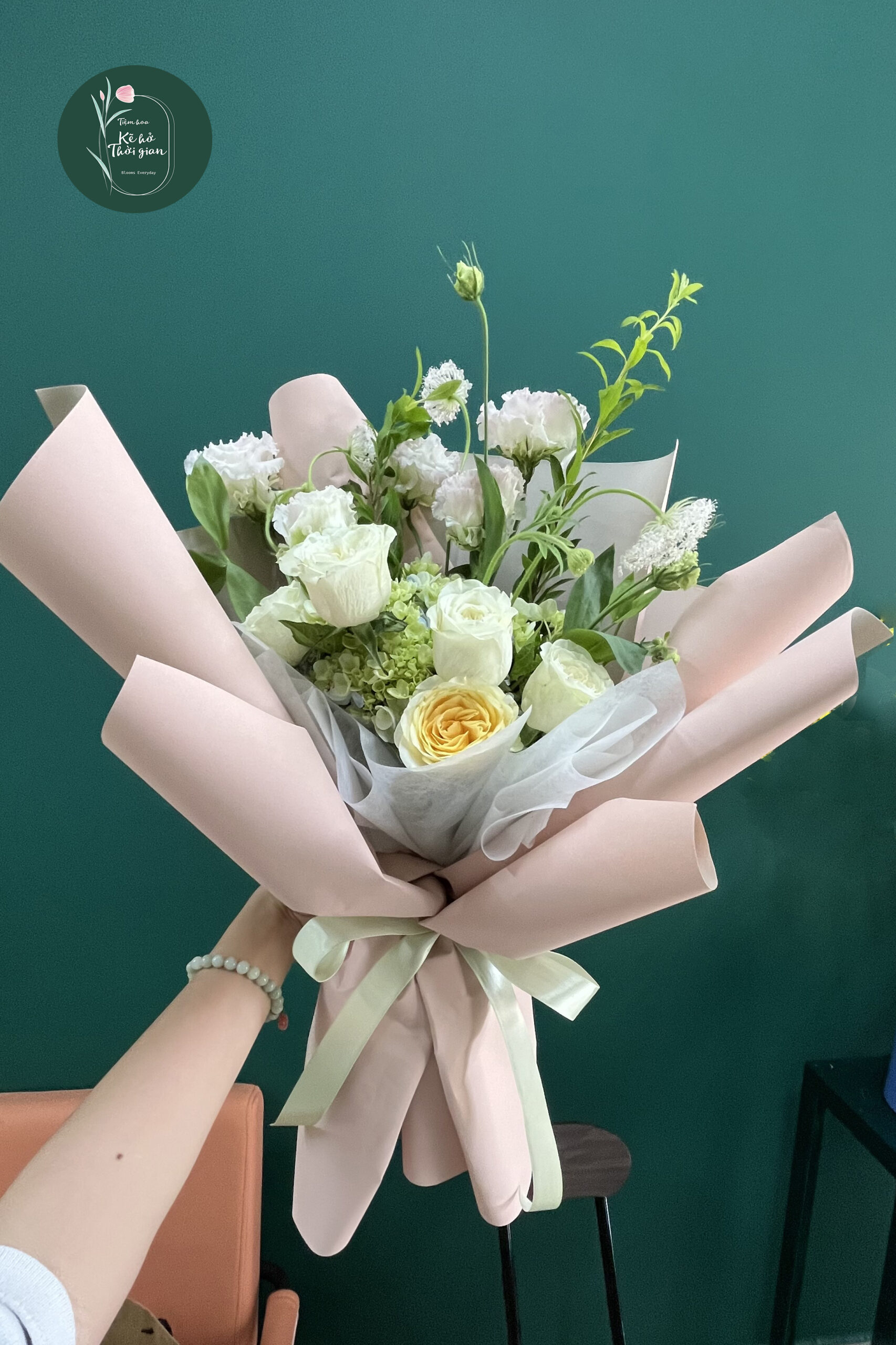 Như ánh nắng cuối chiều khẽ nghiêng qua ô cửa, Giọt Nắng Nghiêng là sự hòa quyện tinh khôi giữa hồng trắng thanh khiết và cẩm tú cầu mềm mại, điểm xuyết thêm những loài hoa phụ tinh tế. Màu trắng dịu dàng ôm lấy sắc xanh nhạt và hồng phớt nhẹ, gợi nên cảm giác an yên, trong trẻo như một buổi chiều mùa thu. Đây là bó hoa dành cho những khoảnh khắc bạn muốn lưu giữ sự ấm áp, nhẹ nhàng nhưng vẫn đầy sang trọng.