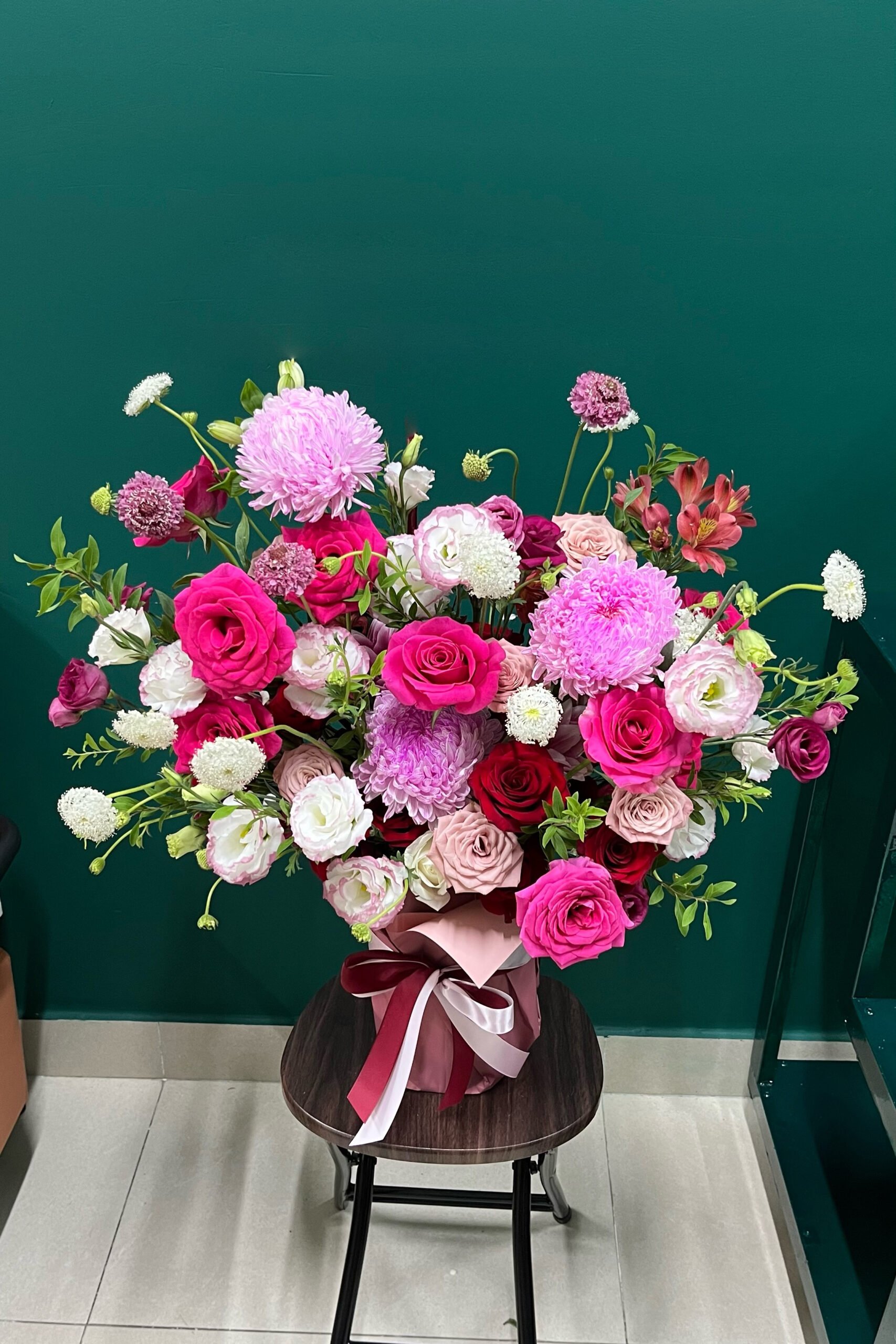 • Mỗi bông hoa như một dấu chân trên con đường ngập tràn sắc màu, tỏa hương thơm nhẹ nhàng và truyền cảm hứng. Bó hoa là biểu tượng của những khởi đầu tươi mới, niềm vui lan tỏa và sự thăng hoa trong cuộc sống — như một hành trình hoa nở rộ đầy kỳ diệu.