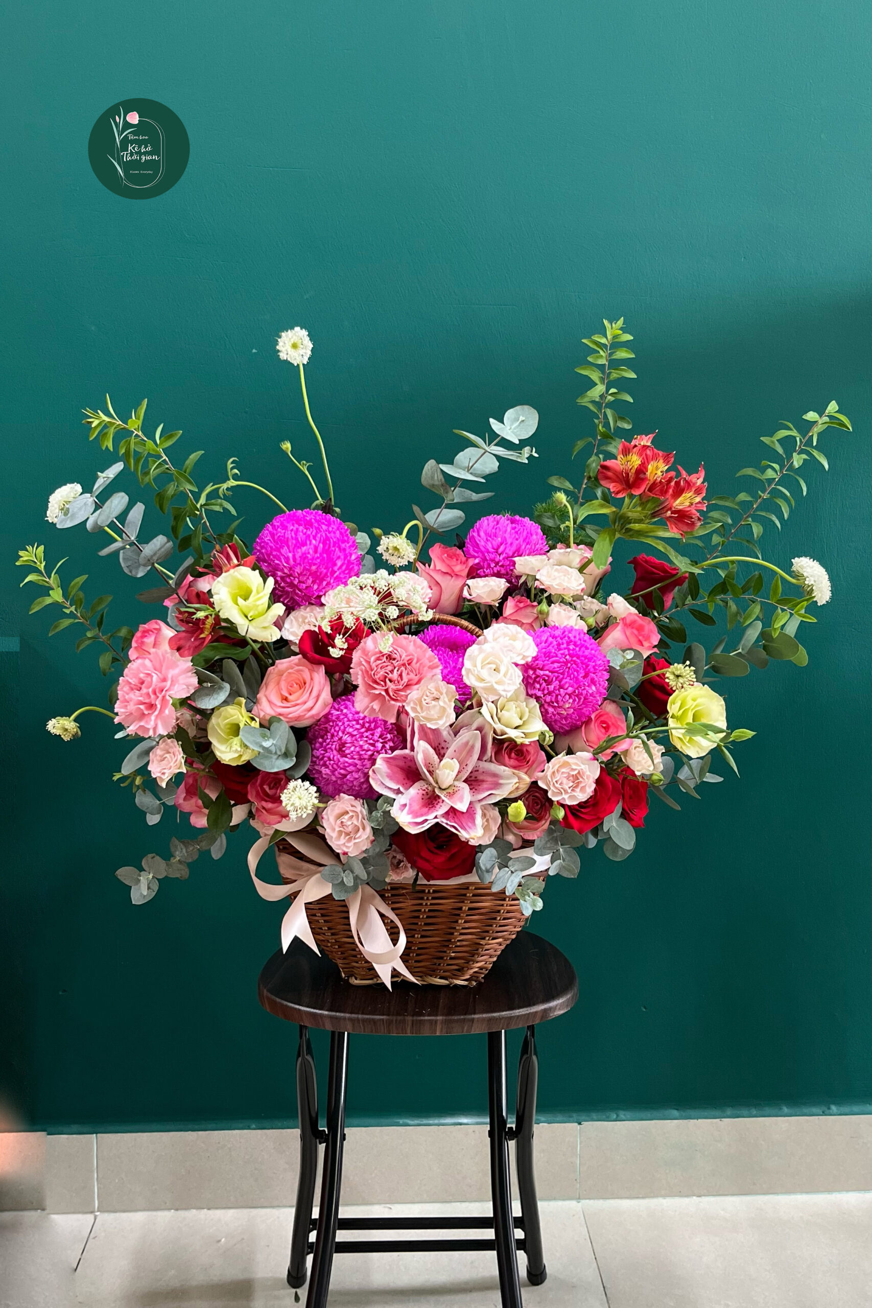 Giỏ hoa với tông màu hồng – đỏ siêu dễ thương, nổi bật và vô cùng tinh tế. Tặng dịp nào cũng hợp: sinh nhật, kỷ niệm, chúc mừng hay đơn giản là “gửi chút yêu thương”.